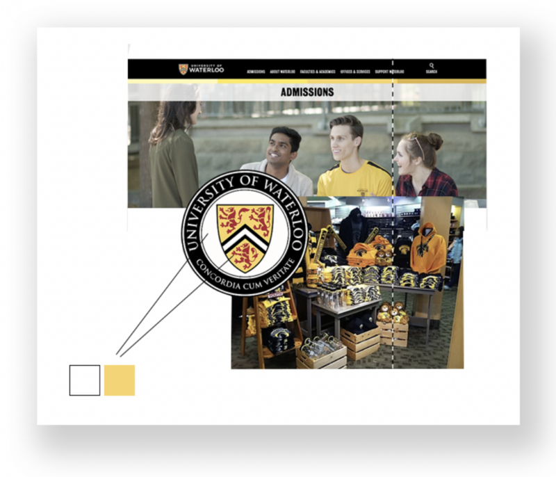 In order for students to become more familiar with the University of Waterloo while interacting with the application, the experience will be based in the universities main colours. These colours have been pulled from the university website, logo and merchandise.